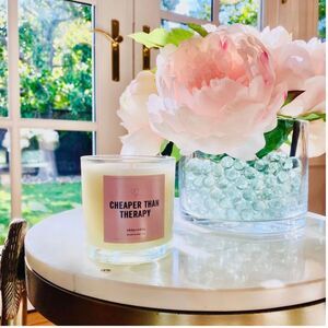 Finding a great therapist is hard. Finding a great candle shouldn't be. Wicks and Tricks Best Selling 'Cheaper Than Therapy' candle is an intoxicating and calming blend of bubbly, floral, and soft fruity scent, refreshing your senses with the combination of apple blossom and pink pepper.. It's the perfect scent to relax and unwind!