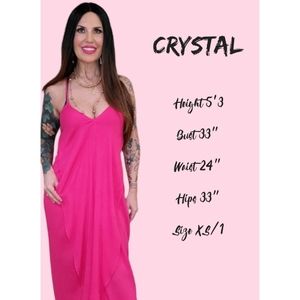Crystal is pictured wearing the size small (one size up from her true size) Had her true size (xs) been an option she would have stayed true to size. However, one size up worked out just fine. So you could easily stay true in size but if you are in between sizes or are unsure, size up.