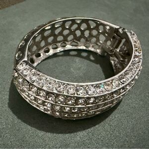 💫 WIDE SILVER RHINESTONE HINGED CUFF BRACELET – 2.5” x 2.7” STATEMENT BANGLE
