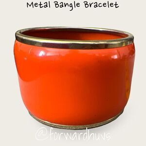 This is a listing for a wide orange bangle bracelet which appears to be older but still modern.