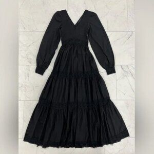WIDOW Black puff shoulder long sleeve smocked lacy tiered cottagegore maxi dress NWT size S