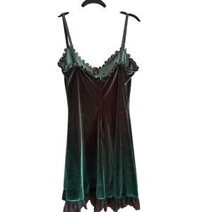 WIDOW | Dolls Kill Emerald Green Velvet Lace Trim Mini Dress With Cross | XL
