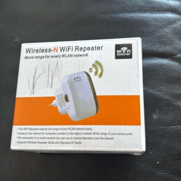 WI-FI Signal Booster Repeater with integrated antenna. Includes owner’s manual. In original box. Never been used. ( PLEASE SEE ALL PICTURES). Will be ready to be shipped in 24 hours except on weekends.