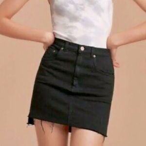WIFRED FREE by Aritzia Tanit Black Denim Mini Jean Skirt Size 4 Raw Hem Grunge
