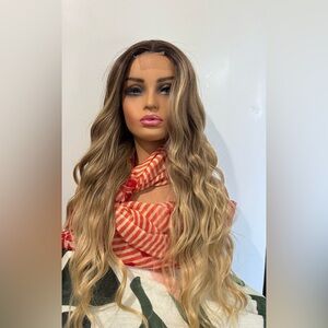 WIG Long Ombre Medium Blonde Wig with Dark Roots - Front Closure Mesh