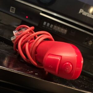 Vibrant red wired controller with ergonomic design. Features easy-to-use buttons.