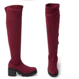 WILD DIVA LOUNGE Women's Vivica Lug Sole Platform Tall Boot, BURGUNDY RED, Size 6.5 M