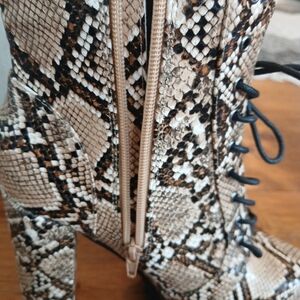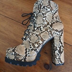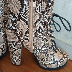 WILD DIVA WOMEN ANKLE BOOTS HIGH BLOCK HEEL LACE UP ZIPPER SNAKESKIN SIZE 8 New