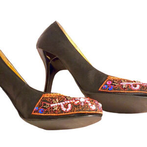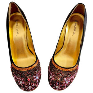 WILD DIVA Women's Floral Embroidered Jeweled Fabric Stiletto 3.5" Pumps Size 8.5