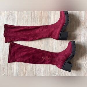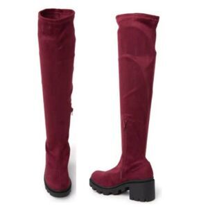 WILD DIVA LOUNGE Women's Vivica Lug Sole Platform Tall Boot, BURGUNDY RED, Size 6.5 & 7 US