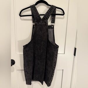 WILD FABLE Black Wash Denim Pinafore Frayed Hem Overall Dress XS NWT