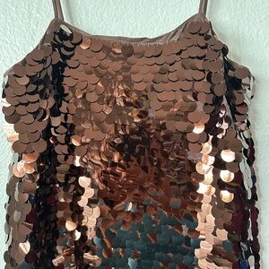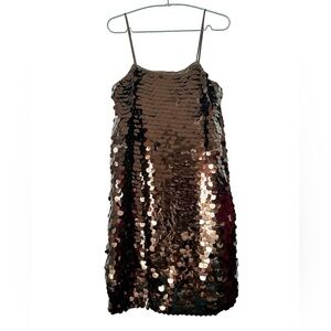 WILD FABLE Brown Big Sequins Spaghetti Strap Mini Pull On Medium Dress BNWT