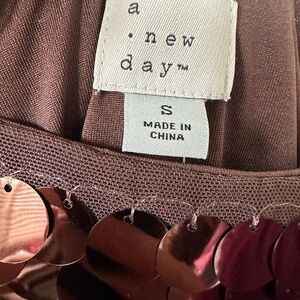WILD FABLE Brown Big Sequins Spaghetti Strap Mini Pull On Small Dress BNWT