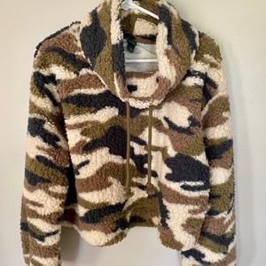 WILD FABLE Camo Sherpa Cropped Pullover Sweatshirt