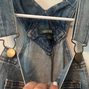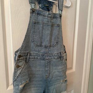 WILD FABLE Size Small denim shorts overalls. Adjustable straps. ONLY WORN ONCE, practically new without tags. Light wash color, buttons and buckle details.
