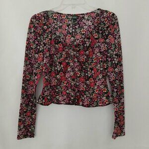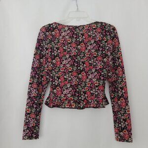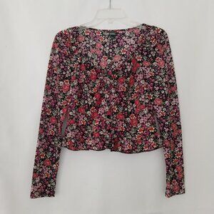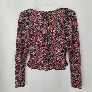 WILD FABLE Floral Pattern Red/Black Long Sleeve Crop Top Women's Size Small