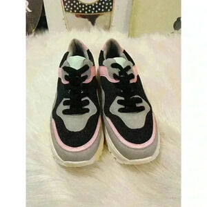 Lace-up sneakers with faux-leather and faux-suede accents.
