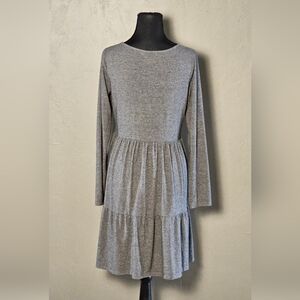 [WILD FABLE] Gray ● Long Sleeve □● Scoop Neck Tiered Midi Dress《M》