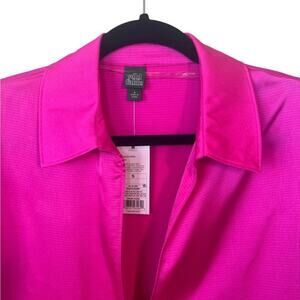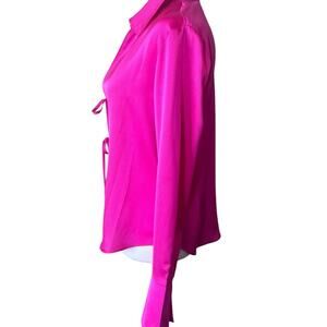 WILD FABLE HOT PINK WOMENS BLOUSE FRONT TIES LARGE CUFF SLEEVES