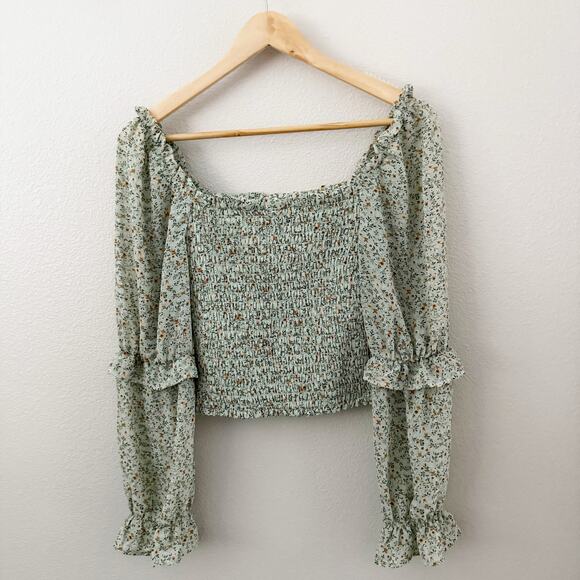 Absolutely adorable cottagecore blouse from WILD FABLE! Size medium, worn once. Balloon sleeves with smocked bodice. Slightly cropped. Mint green with yellow and white floral print.
