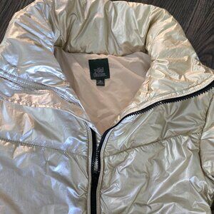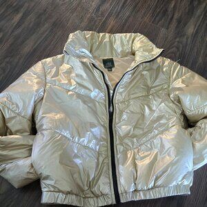 Cozy quilted puffer jacket from WILD FABLE in shimmery gold. New without tags and in new/excellent quality and condition. Zipper front closure. Side pockets. SIZE XS/MEASUREMENTS: pit - pit = 20.5" x 26" long. Very, very nice jacket!
