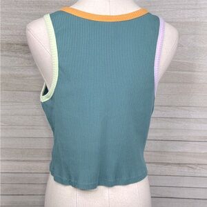 WILD FABLE Ringer Style Cropped Ribbed Tank Top Green/Multi-Large