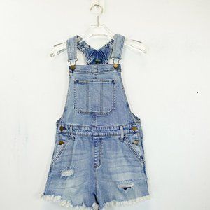 WILD FABLE Romper Small Womens Denim Blue Med Washed Pocket Distressed Raw Hem