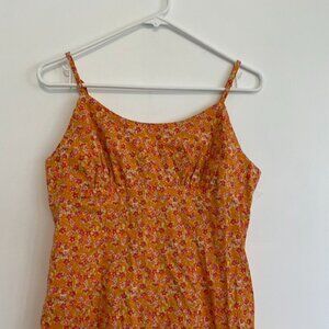 WILD FABLE Sleeveless Woven Bodycon Dress Orange Red Floral Mini Cotton Y2K 90s