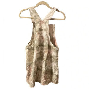 Pre owned like new. Super cute cream olive green and pink tie dye denim overall dress. WOMENS size small.