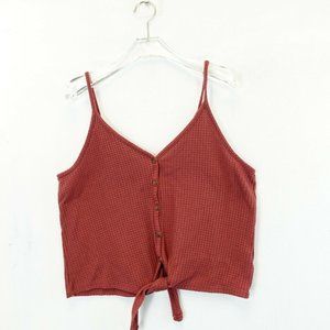 WILD FABLE Women's Red Nude Top Blouse XL Button Front Sleeveless Strappy Tie Features - Sleeveless, V-Neck, Lightweight, Button closure, Tie waist, Knitted, Stretchable, Made from 100% recycled plastic