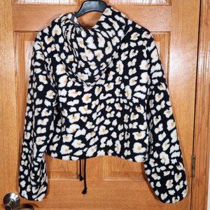 WILD FABLE Womens XL Crop Sherpa Hoodie Shirt Jacket Pullover Sweater Black