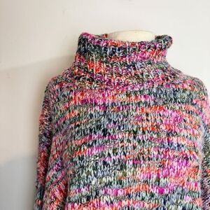 WILD FABLE sweater | pink grey chunky cowl top | drop shoulder | Large