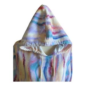 Super cute oversized sweatshirt, cropped, has hood, beautiful colors, blues, pinks and yellows, excellent condition, size medium