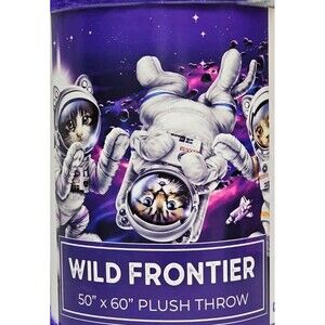 WILD FRONTIER PLUSH THROW WILDERNESS SPACE CATS ASTRONAUT 50" X 60" Soft Poly