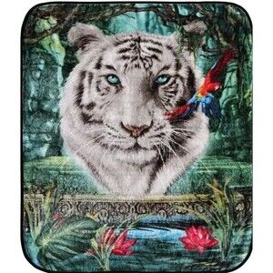 WILD FRONTIER WILDERNESS BENGAL TIGER PLUSH THROW 50"X 60" JUNGLE Soft Polyester , Warm & Durable 50% Recycled Polyester.