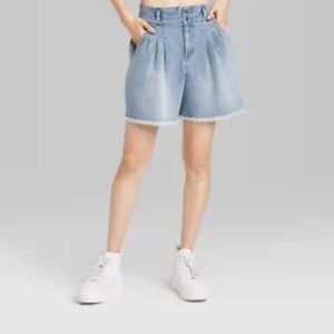 WILD Fable Womens Highest Rise A-Line Denim Shorts Pleated Raw Hem Lt. Blue