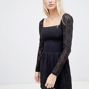 WILD HONEY Long Puff Sleeve Lace Shirred Crop Top