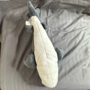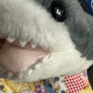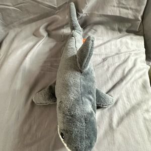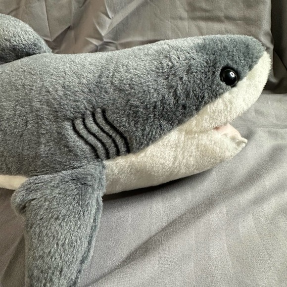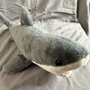WILD REPUBLIC gray plush stuffed shark, approx. 15" end to end. This guy had a tooth extracted (see pic) but other wise in great shape! Comes from pet/smoke free shop.