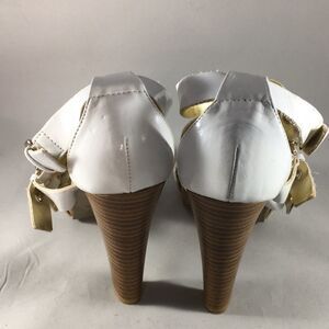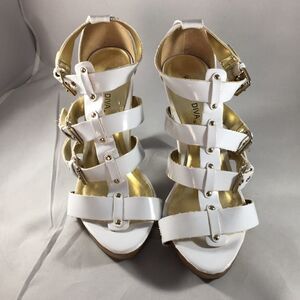 Used white with gold hardware platform heels good shape mark on sole of right shoe (see pics)