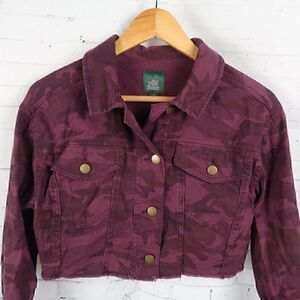 PURPLE CAMO LONG SLEEVE CROPPED COTTON JACKET SIZE XS BY WILD FABLE PRE OWNED NO FLAWS