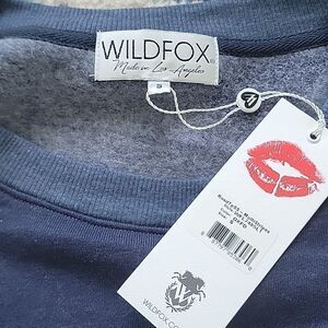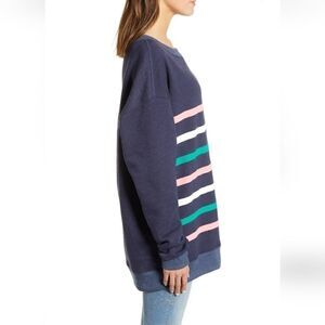 WILDFOX Blue Multicolor Stripe Roadtrip Oversized Crewneck Sweatshirt Size Small
