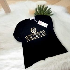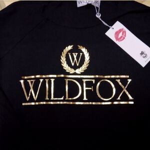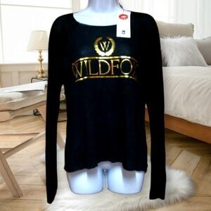 WILDFOX COUTURE GOLD CRESTED WILDFOX LOGO BLACK LONG SLEEVE LIGHTWEIGHT SWEATER