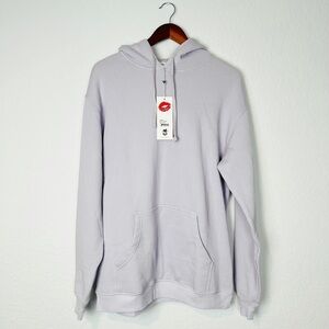 A slouchy oversized fit lends a borrowed-from-him look to a supersoft hoodie you'll want to wear all day, every day.