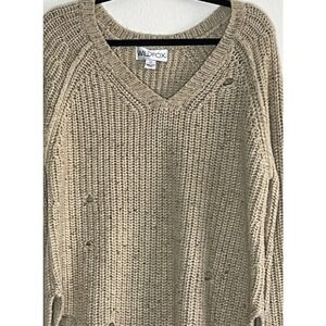 WILDFOX Couture Dusk Tunic Womens M Brown Distressed Oversized Sweater Size M. Long sleeves, v-neckline, Destroyed sweater, constructed from super soft material. Oversized fit that hangs effortlessly with dual side slits.High -Low at hem. Intentional "tears" and distressing in this ribbed trim. Measurements : pit to pit 21.5",length 31.5" . gently used. acrylic/nylon/ wool blend.