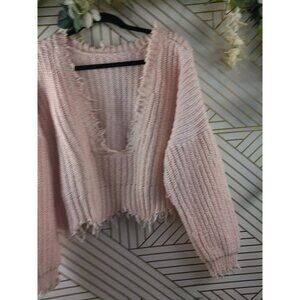 WILDFOX Deep-V Reversible Palmetto Sweater Fringe Seashell Pink Size Small.
