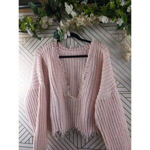 WILDFOX Deep-V Reversible Palmetto Sweater Fringe Seashell Pink Size Medium