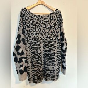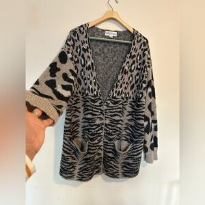 WILDFOX Leopard Animal print wool alpaca Cardigan Avani oversized Sweater Sz Xl