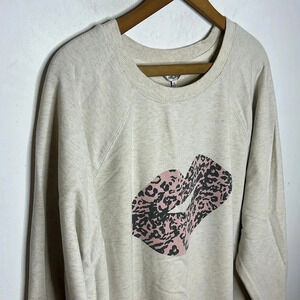 WILDFOX Leopard Lips Kiss Graphic Crewneck Long Sleeve Cream Cozy Sweater