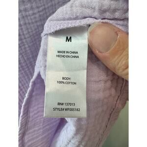 Soft, sweet, and effortlessly stylish, this Wildfox crop top is the perfect blend of cozy and cute. Made from 100% cotton in a lightweight textured gauze fabric, it features a soft lilac hue, pearl-trimmed neckline, and keyhole back with a button closure.