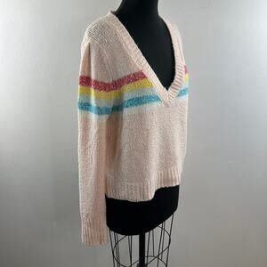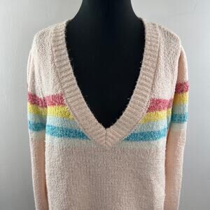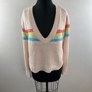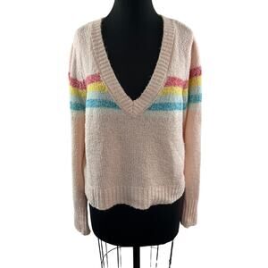 Wildfox Marcel Dreamer Sweater Distressed Rainbow Long Sleeves V-Neck Size L